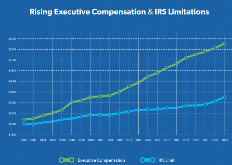 Qualified plans cannot provide sufficient retirement income due to IRS contribution limits. This creates a gap that SERPs fill by offering targeted income replacement and long-term security.